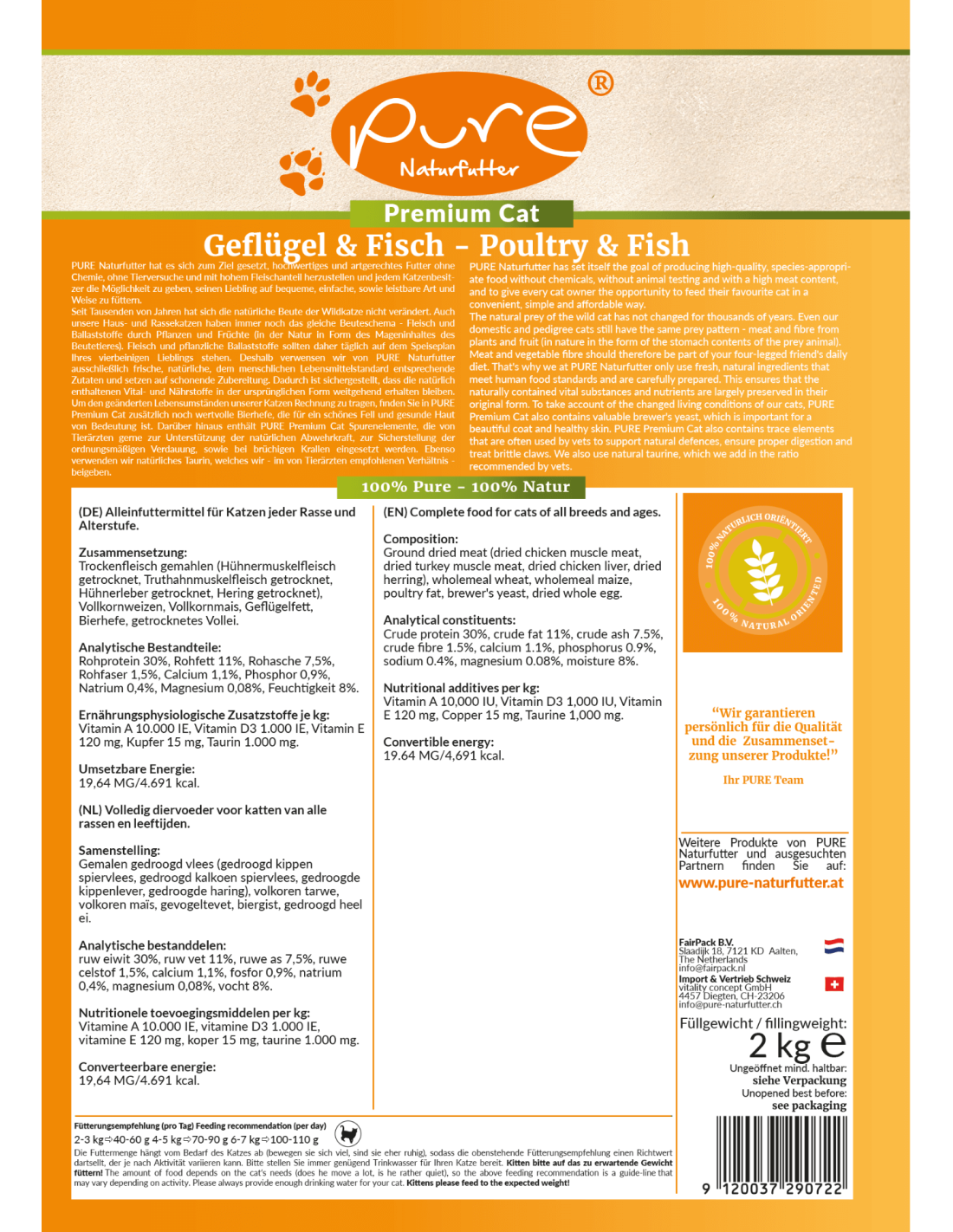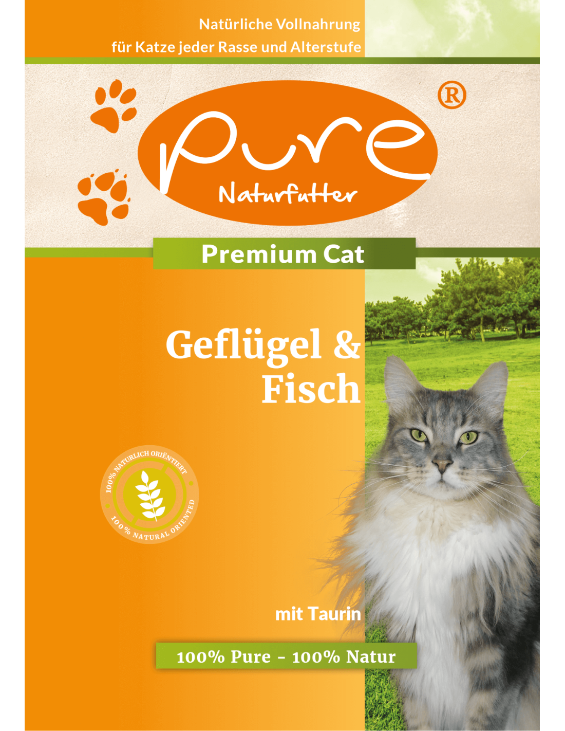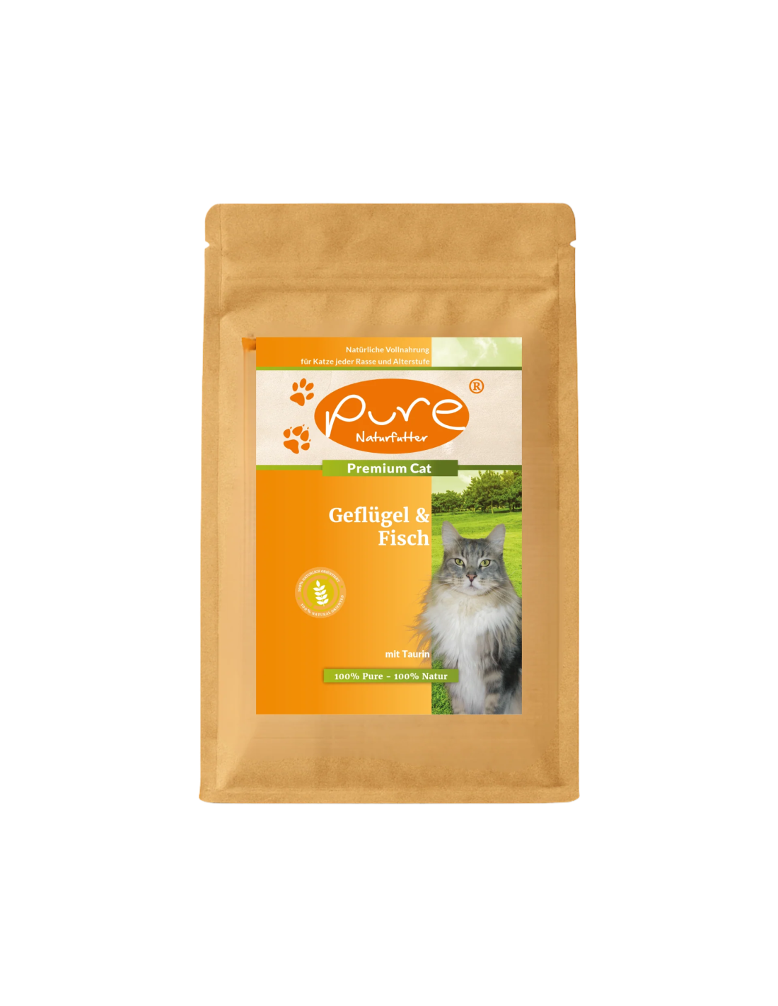 Deine Katze ist einzigartig – genauso wie ihr Futter sein sollte. PURE Premium Cat Geflügel & Fisch ist ein natürliches Trockenfutter, das auf das ursprüngliche Beuteschema deiner Katze abgestimmt ist.
